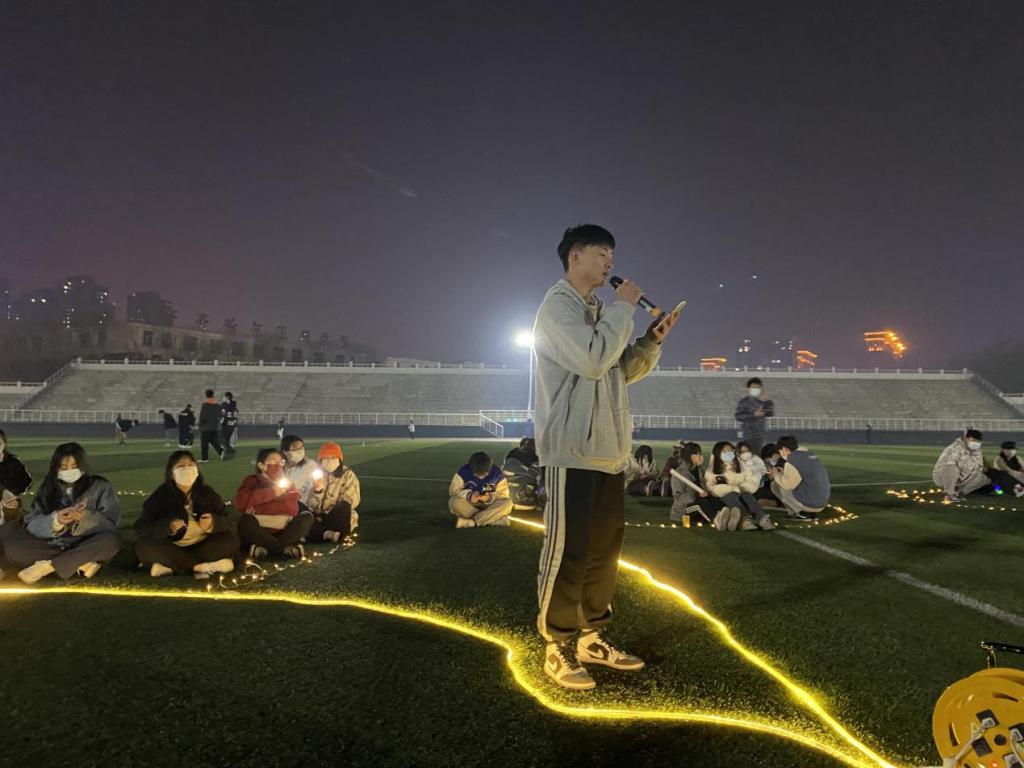 最后,整场活动在《江南》这首歌曲声中结束。同学们纷纷举起了荧光棒和手电筒随着音律舞动,体育场上流光溢彩,吸引了大量的学生驻足观看。