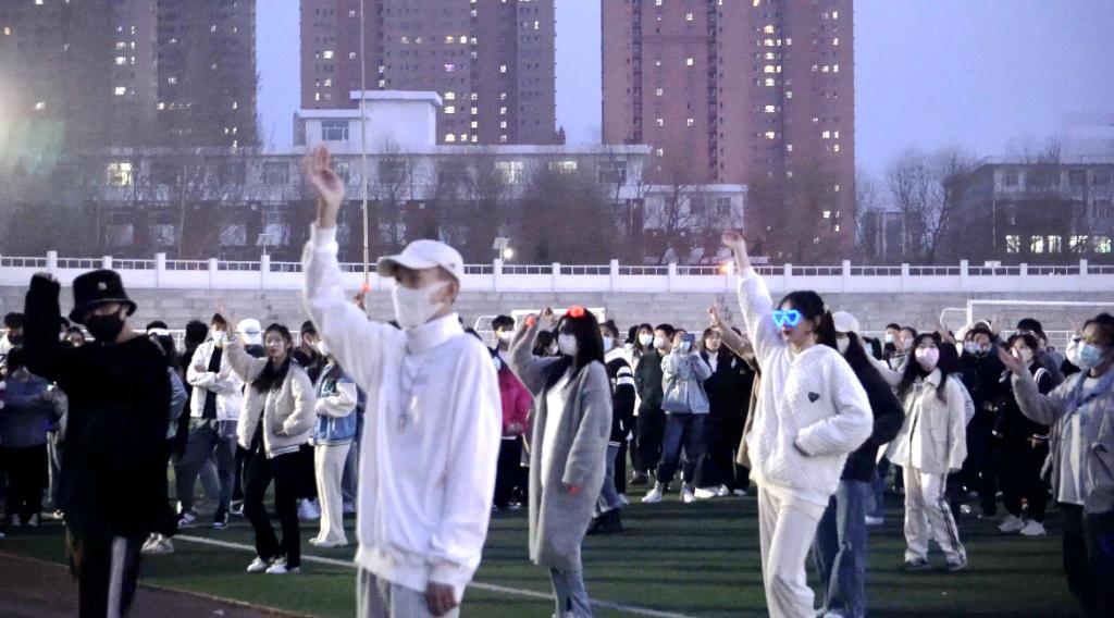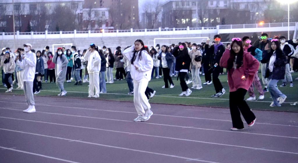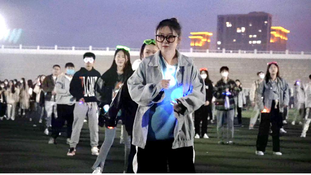 伴随欢乐的节拍,同学们跳了《别叫我达芬奇》《最炫民族风》《站在草原望北京》《社会摇》等十余首动感的舞曲,璀璨的灯光和欢乐的笑脸成为夜晚校园一道亮丽的风景。
