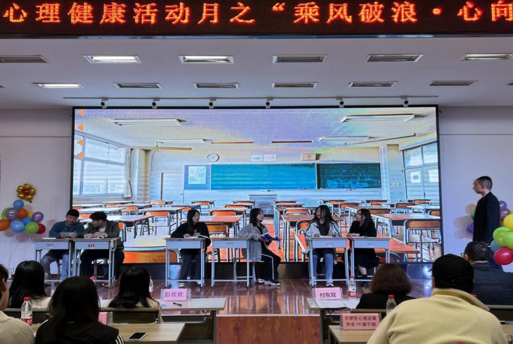 为贯彻落实教育部《高等学校心理健康教育指导纲要》,提升大学生心理素质,“5月25日”全国大、中学生心理健康日来临之际,4月29日18点,学校心理健康教育中心在二教学区2508室举行以“乘风破浪·心向阳光”为主题的开幕式活动。学生发展中心彭欢欢、汪苗苗、裴志启老师和心理健康教育中心付东双、王婷婷,周倍娴老师应邀出席开幕式,72名学生参加本次活动。