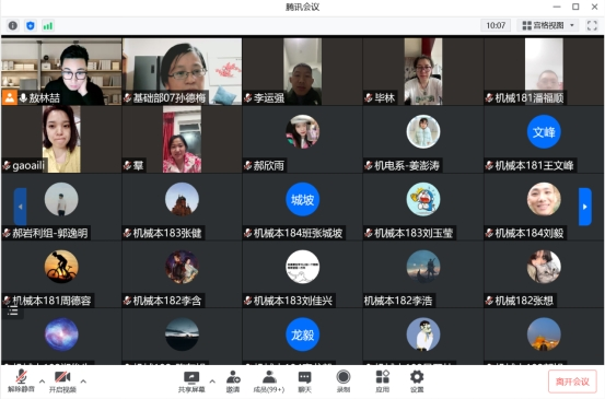 5月3日19:30,机械专业负责人敖林喆通过腾讯会议平台主持召开了机械专业2018级全体毕业生工作会议,14位生涯导师教师以及机械2018级171名同学参会。