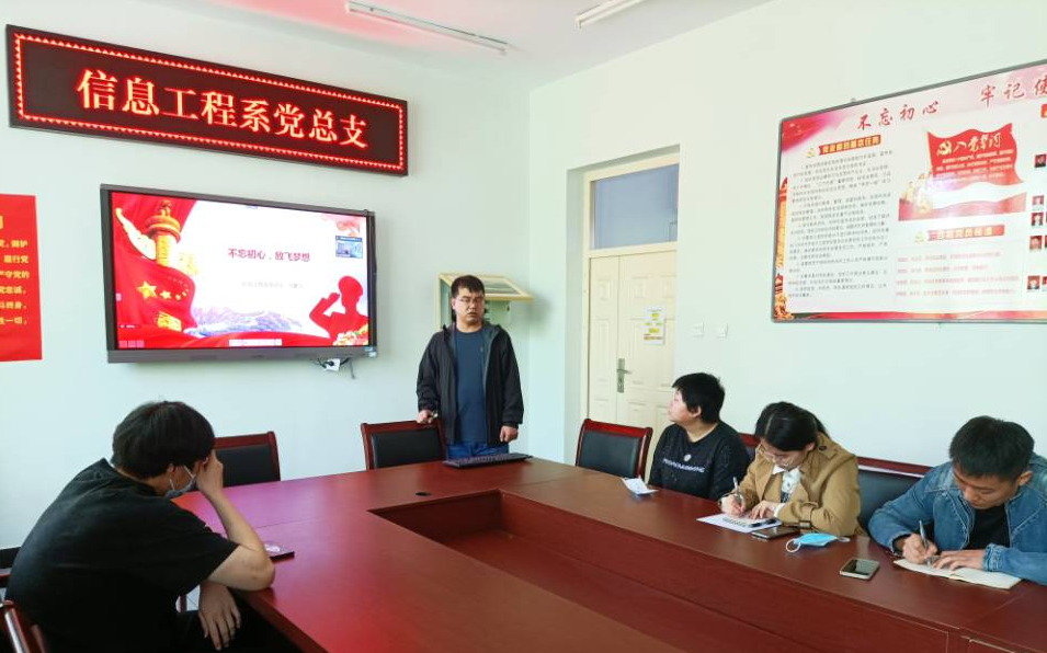 5月31日,信息工程系党总支在党员之家举行“不忘初心、放飞梦想”为主题的毕业生党课活动。这是毕业生在校期间最后一次上党课。信息系全体毕业生党员参加,组织员任鹏飞主讲。
