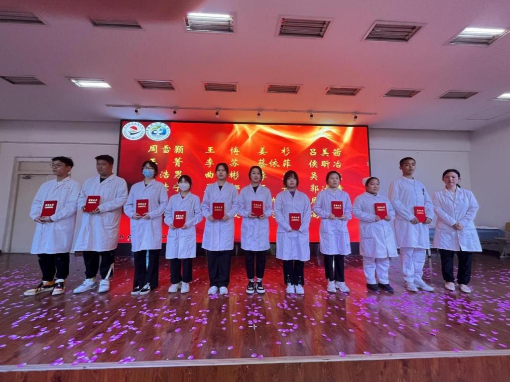 歌曲结束后,由杨立群、杜红梅、黄单、孙畅为学生进行了神圣而庄严的授帽仪式。