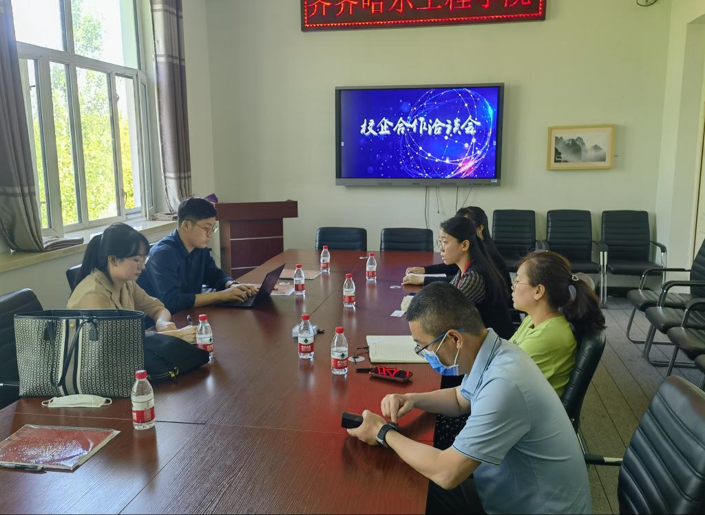 6月18日上午,信息工程系负责人刘春媛、教学工作副主任李野、数据科学与大数据技术专业负责人高敏、实验室建设负责人丁向朝在一号教学区2406会议室,与华为技术有限公司黑龙江代表处华为云事业部院校合作经理马胜男、华为技术有限公司齐齐哈尔市分公司总经理张春园就校企合作事宜进行洽谈。