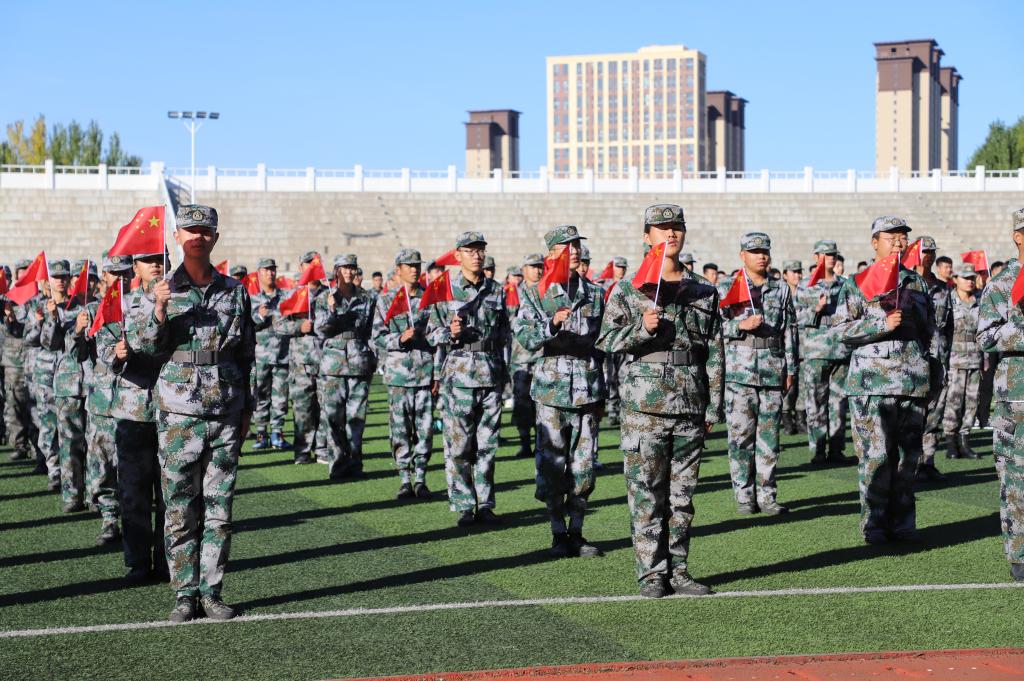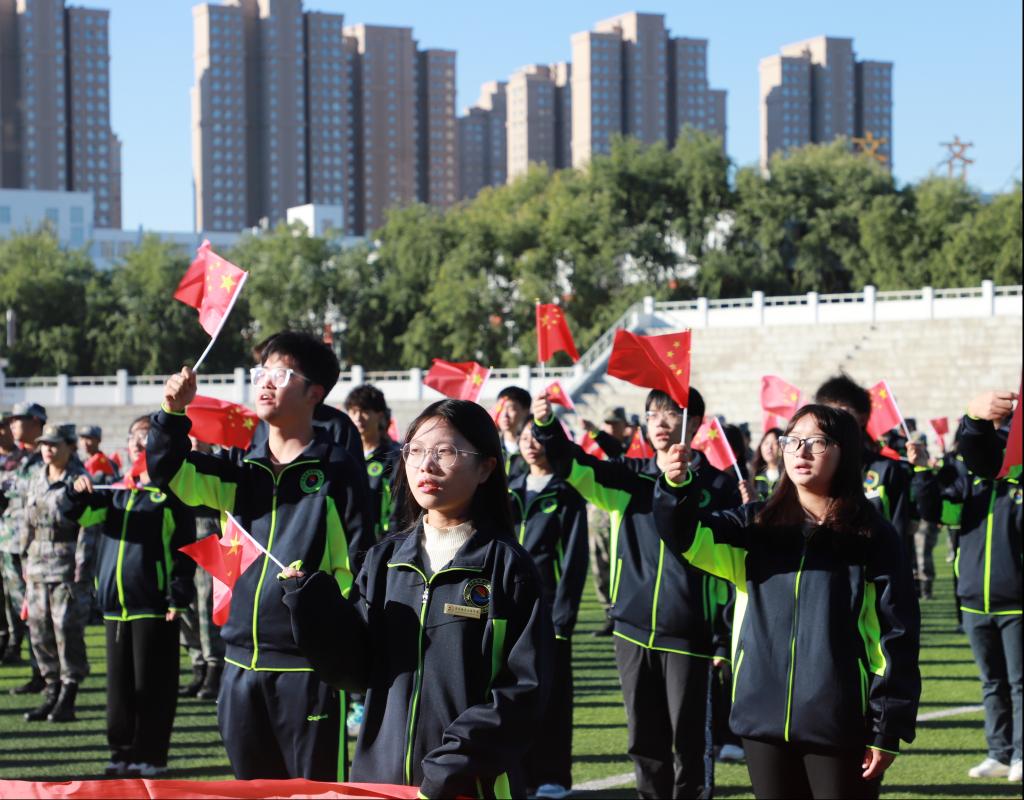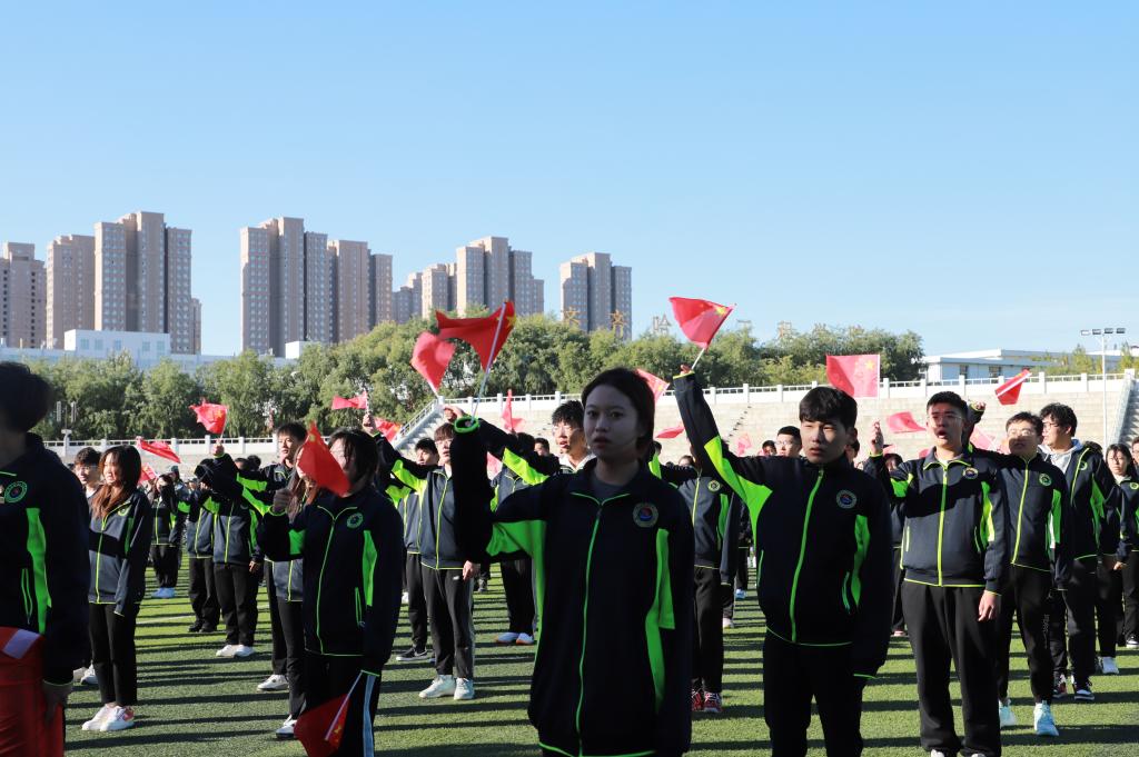 为讴歌伟大祖国73年的光辉历程,激发广大师生爱党、爱国、爱社会主义的热情,10月1日8时,校团委在体育场举办“同心筑梦迎国庆 青春献礼二十大”主题升旗仪式,教官团指导老师孙晓芳、校团委指导教师张云惠及教官团、全体校组织学生骨干,共400余人参加。