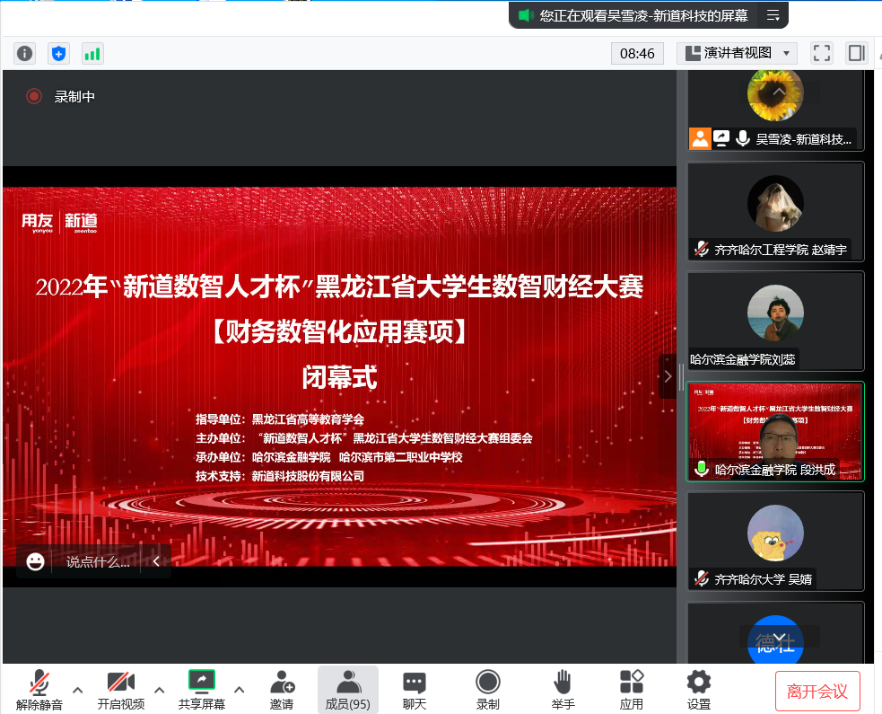本次比赛由“新道数智人才杯”黑龙江省大学生数智财经大赛组委会主办,哈尔滨商业大学、哈尔滨理工大学、哈尔滨金融学院联合承办,新道科技股份有限公司技术、黑龙江省高等教育学会支持举办。