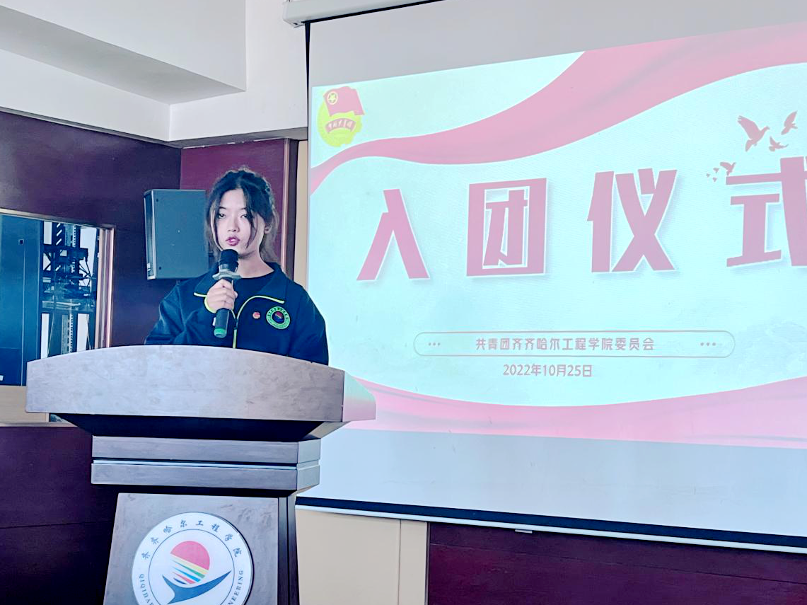 在团委副书记孙宇同学的领誓下,全体新团员面对着鲜艳的中国共青团团旗,举起右拳,庄严宣誓。铿锵有力的声音,彰显了新团员一心向党的坚定决心。