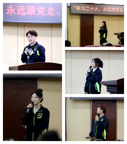 13个团支部根据抽签顺序依次上台分享学习成果。在比赛过程中,选手们地向评委和观众讲解他们精心策划的团日活动,其中各团支部通过观看党的二十大视频及讲解PPT的形式来开展团日活动。风景211班团支部、机械221班团支部则通过党史竞赛、合唱团歌和阅读红色书籍等方式激发学生对红色文化的热爱,让学生明白共青团的意义。