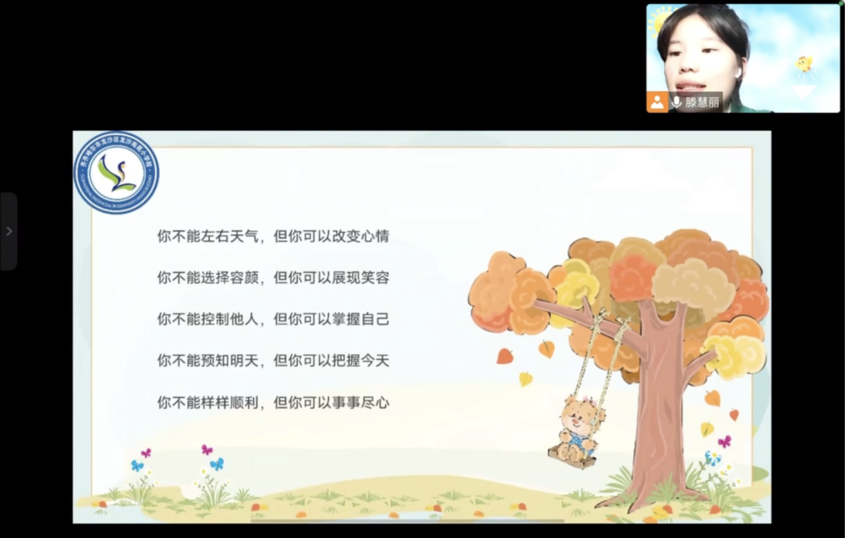 12月23日,第三堂心理健康课由心理健康教育中心教师周倍娴作为主讲人,她从家长和学生的心理健康、家长心理调适技巧、家长与学生的沟通相处方式三个方面讲述了如何能够提升亲子关系。