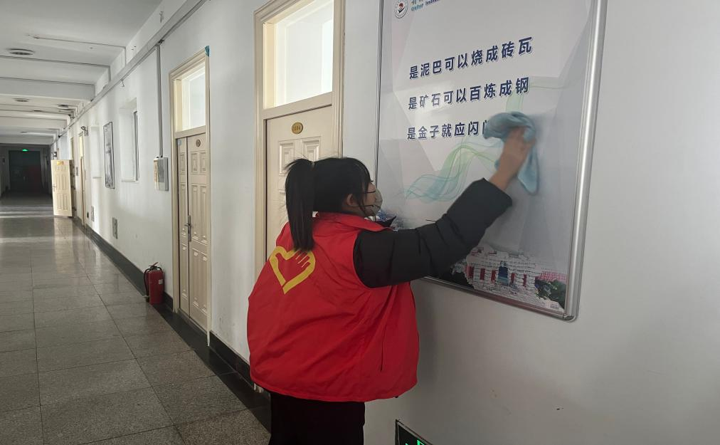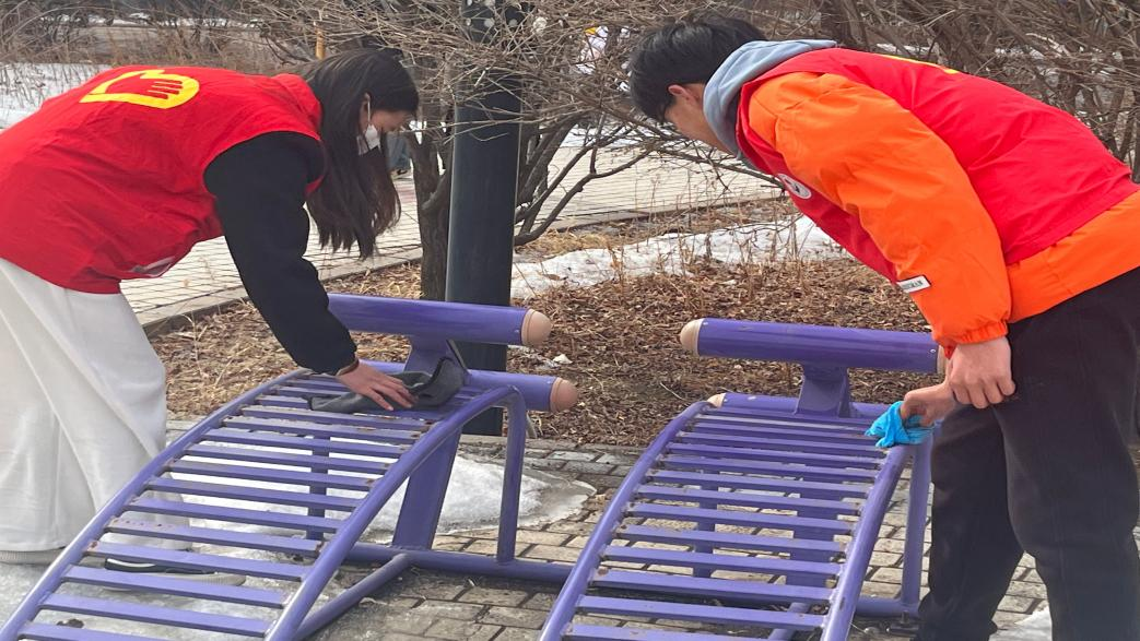 志愿者们相互配合,认真负责,充分发挥了“奉献、友爱、互助、进步”的志愿精神,展现当代大学生的责任与担当。他们的身影穿梭在教学楼、九思廊、篮球场、图书馆等地方,清扫积雪,清洁宣传展板、室外椅凳、健身器材、教室卫生,以及捡拾寝室楼周边白色垃圾等,助力文明校园建设,“擦亮校园名片”。