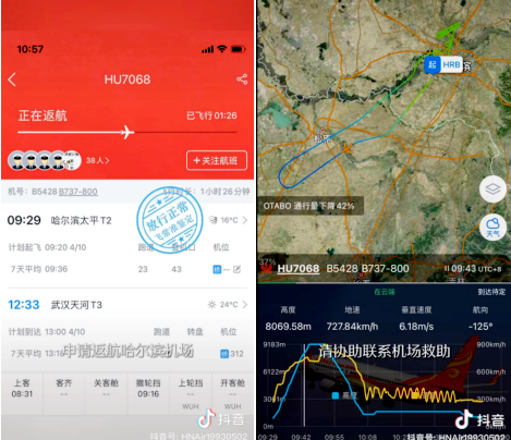 当天上午,海南航空HU7068航班在哈尔滨太平国际机场起飞,在飞往武汉的途中,刚刚经过吉林省松原市时,机上一名女性乘客突然心脏不适、呼吸困难,航班乘务人员通过广播寻求机上医务工作者的帮助。