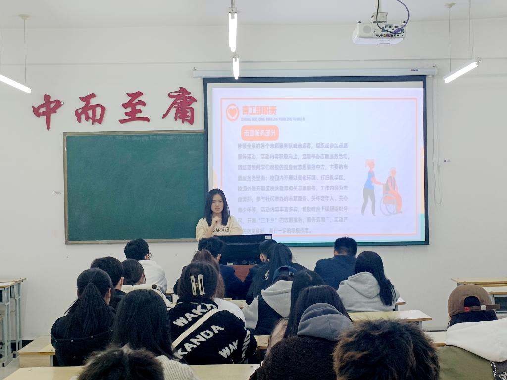 宋雪微首先介绍了此次培训目的和意义,随后,就青工部的职责以及如何成为一名大学生志愿者等方面进行了系统讲解,并强调团干部应端正自己的态度,明确责任,提升素质,争做新时代优秀的团干部。