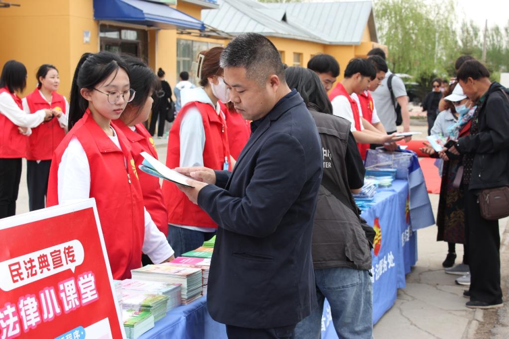 5月19日上午,校团委组织青年普法志愿者10人到市公园和梅里斯区哈拉新村先后开展青年普法志愿者普法基层行活动。