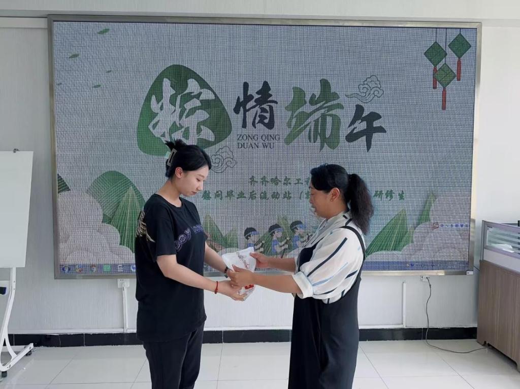 学校工会为流动站研修生准备了粽子、鸡蛋和五彩绳。