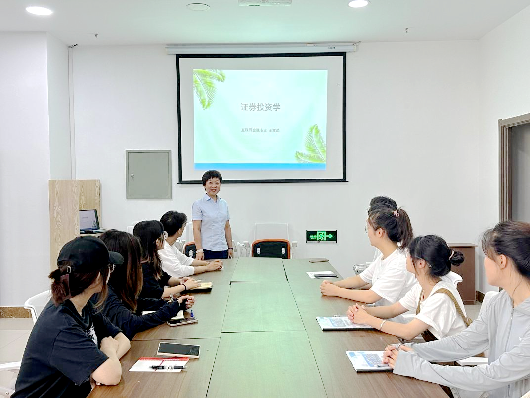 课程讲授完毕后,中国银河证券龙华路证券营业部董事长刘昉就授课内容及形式与专业教师进行了广泛交流。刘昉肯定了“教学做”合一的授课方式,并结合企业真实案例,与专业教师进行了一次集体研讨交流。