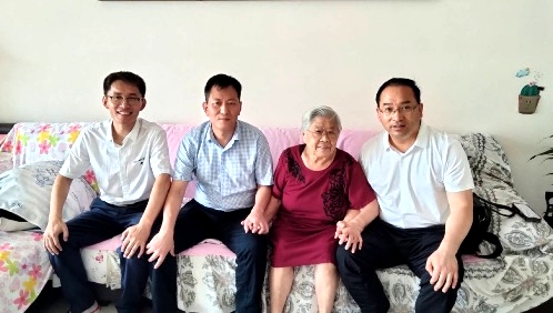 两位校友到达齐市的第一件事就是看望了他们最尊敬的班主任牟老师。88岁高龄的牟老师一眼便认出了当年的两名学生,师生共同回忆过往,感怀当年。