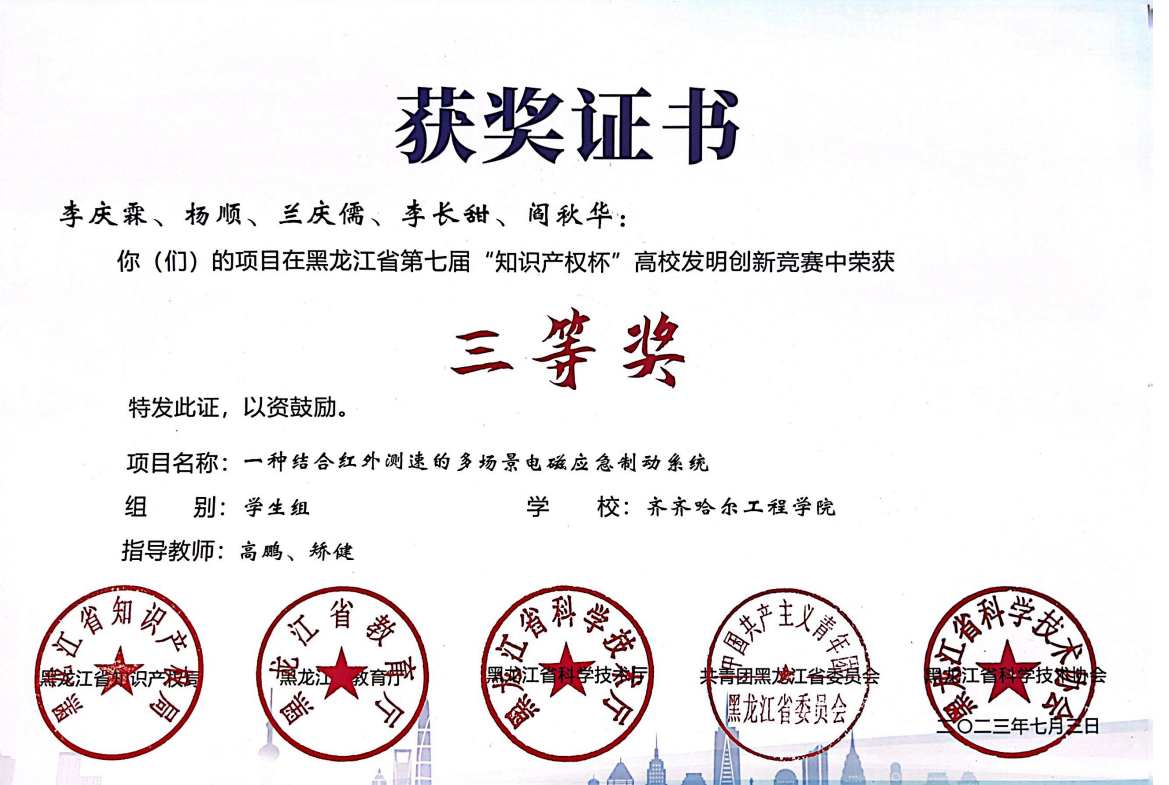 近日,黑龙江省第七届“知识产权杯”高校发明创新竞赛圆满闭幕。Beat365三支队伍获奖,一支获教师组三等奖,另两支获学生组三等奖。
