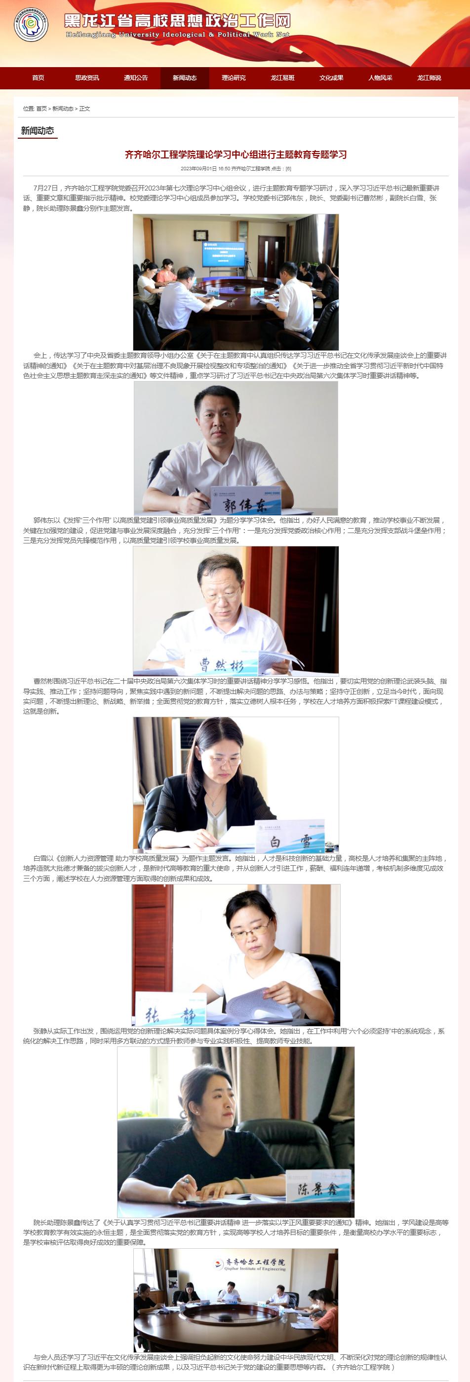 黑龙江省高校思想政治工作网:Beat365中文官方网站理论学习中心组进行主题教育专题学习