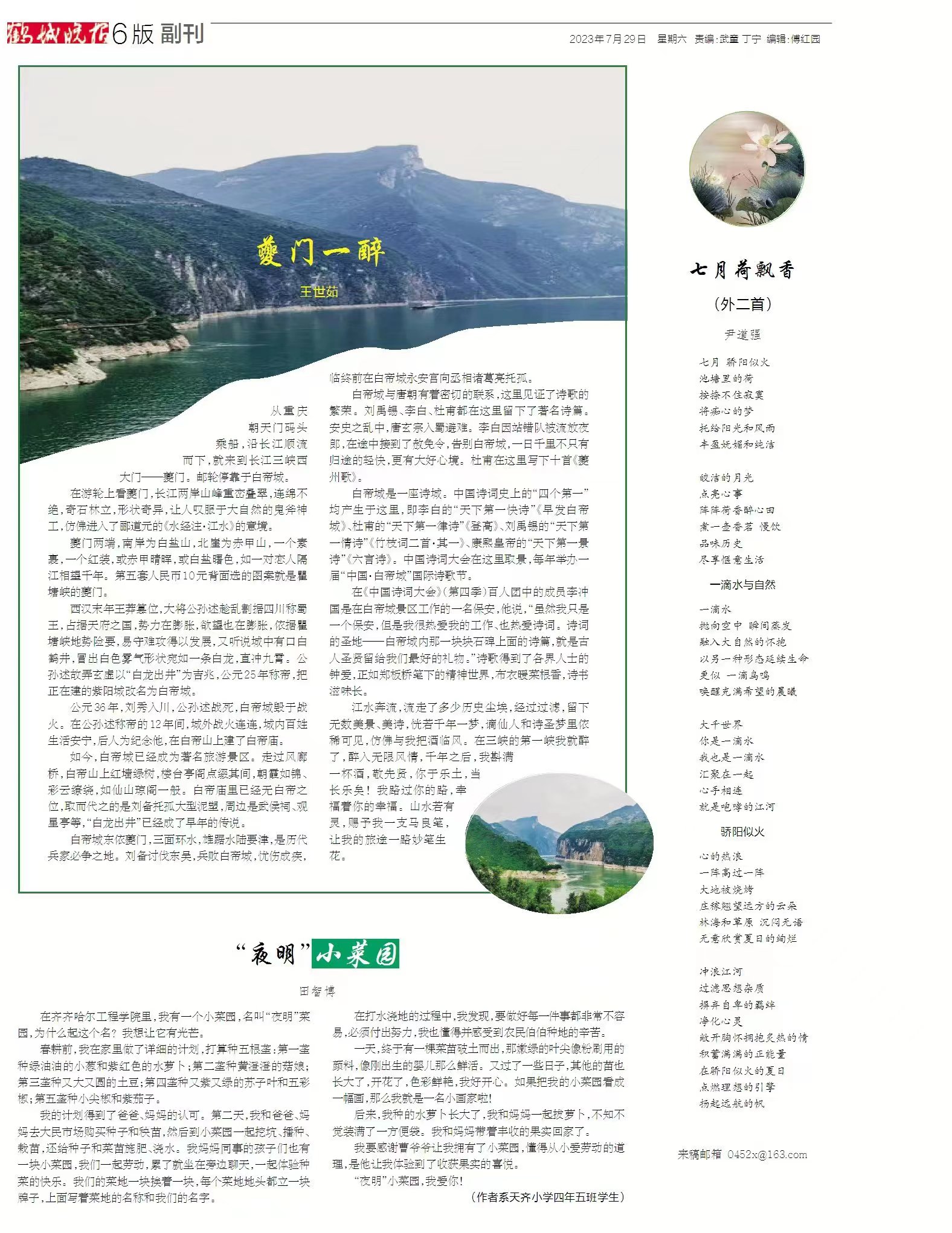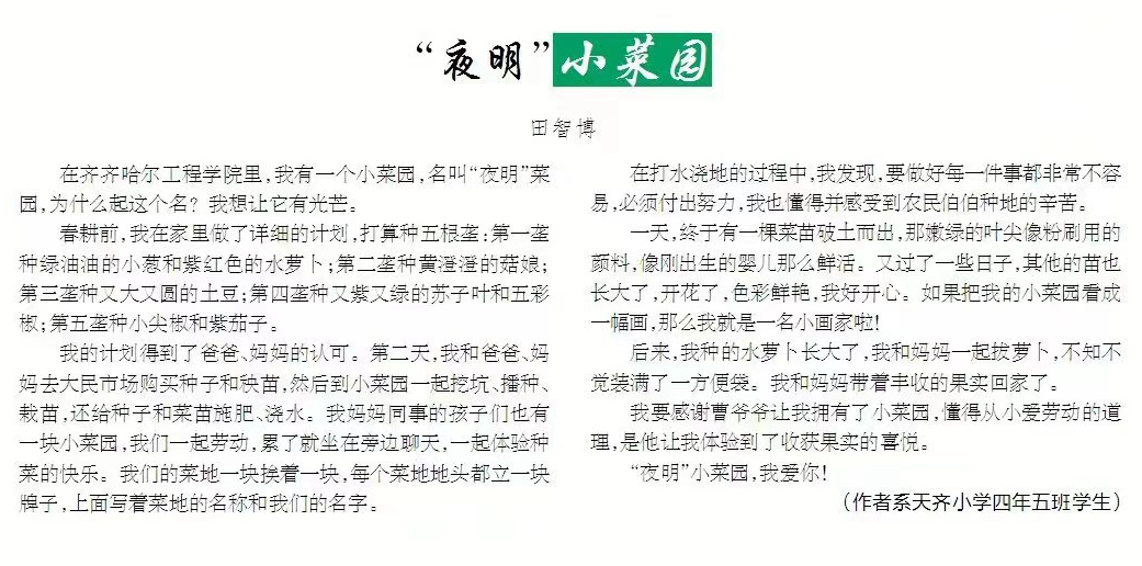 鹤城晚报发表子弟学校学生作文《“夜明”小菜园》