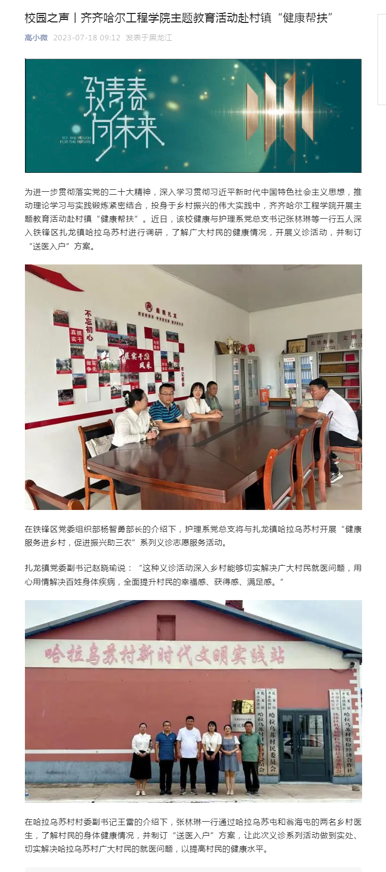 黑龙江高校广播(高小微公众号):Beat365中文官方网站主题教育活动赴村镇“健康帮扶”