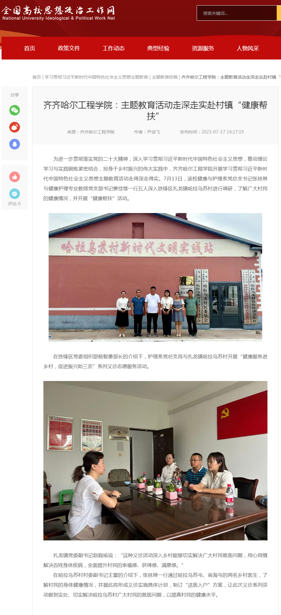 全国高校思想政治工作网:Beat365中文官方网站:主题教育活动走深走实赴村镇“健康帮扶”