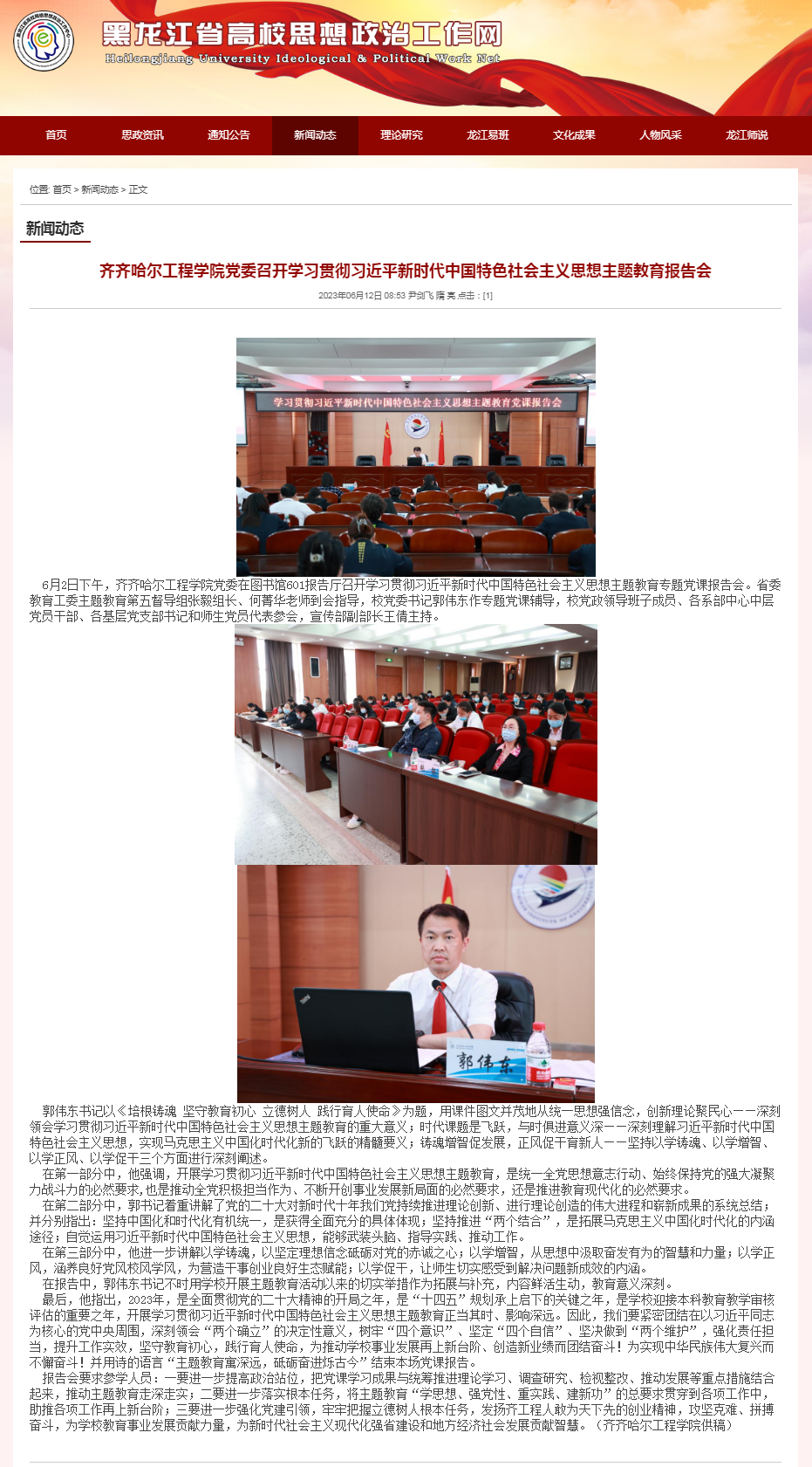 黑龙江省高校思想政治工作网:Beat365中文官方网站党委召开学习贯彻习近平新时代中国特色社会主义思想主题教育报告会