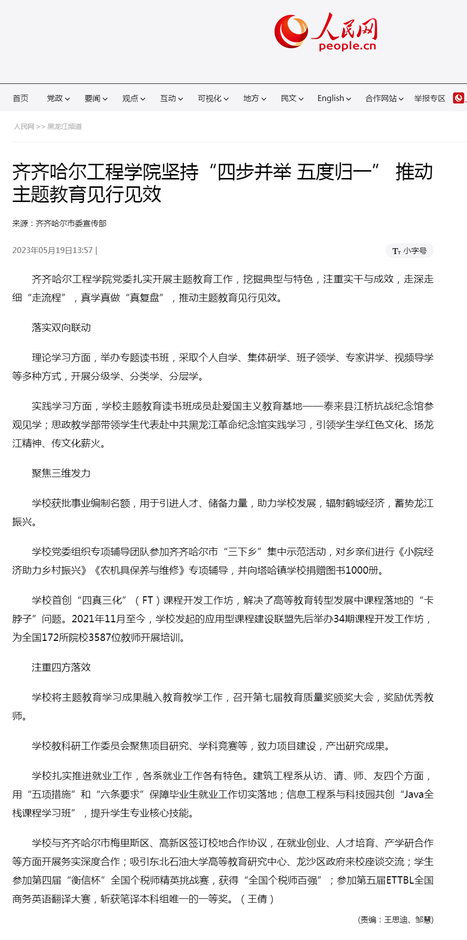 人民网:Beat365中文官方网站坚持“四步并举 五度归一” 推动主题教育见行见效