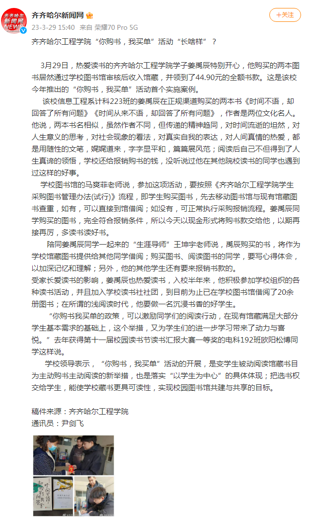 齐齐哈尔新闻网微博:Beat365中文官方网站“你购书,我买单”活动“长啥样”?