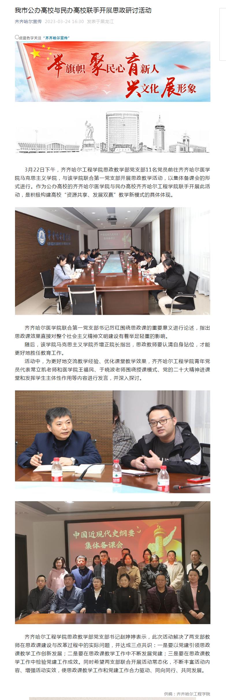 齐齐哈尔宣传:我市公办高校与民办高校联手开展思政研讨活动