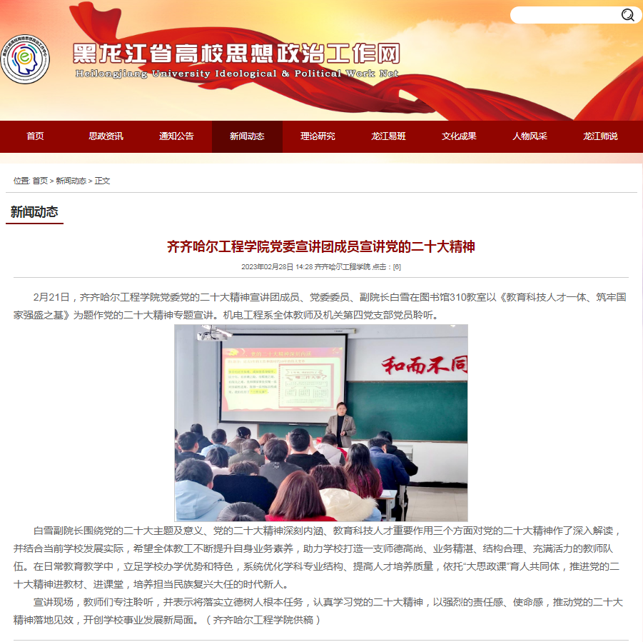 黑龙江省高校思想政治工作网:Beat365中文官方网站党委宣讲团成员宣讲党的二十大精神