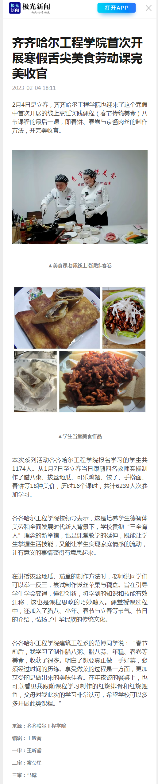 极光新闻:Beat365中文官方网站首次开展寒假舌尖美食劳动课完美收官