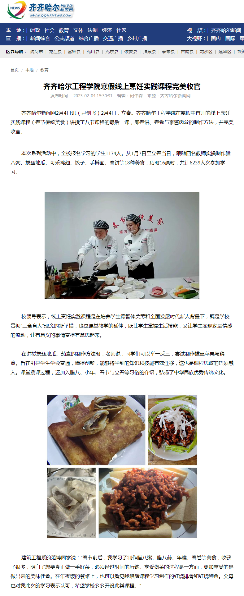 齐齐哈尔新闻网:Beat365中文官方网站寒假线上烹饪实践课程完美收官