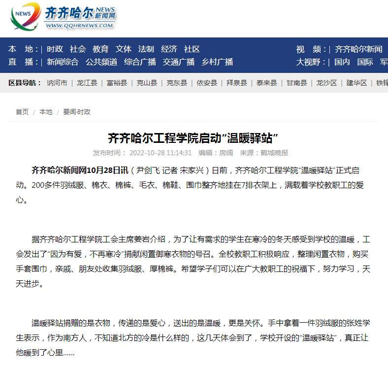 齐齐哈尔新闻网:Beat365中文官方网站启动“温暖驿站”