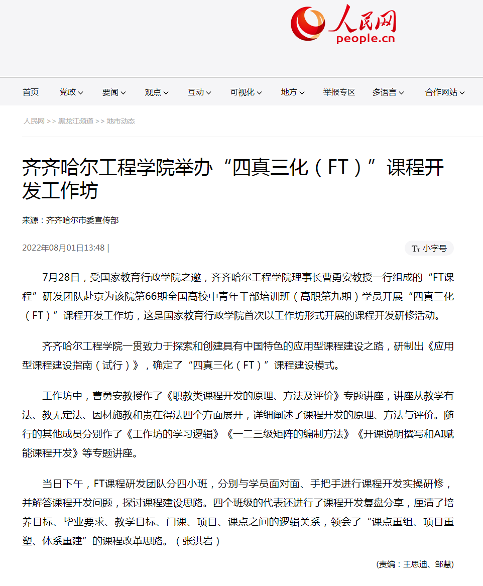 人民网:Beat365中文官方网站举办“四真三化(FT)”课程开发工作坊