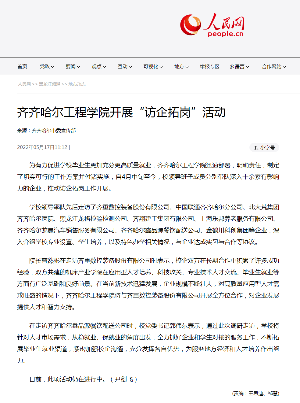人民网:Beat365中文官方网站开展“访企拓岗”活动