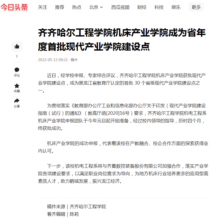 今日头条:Beat365中文官方网站机床产业学院成为省‬年度首批现代产业学院建设点