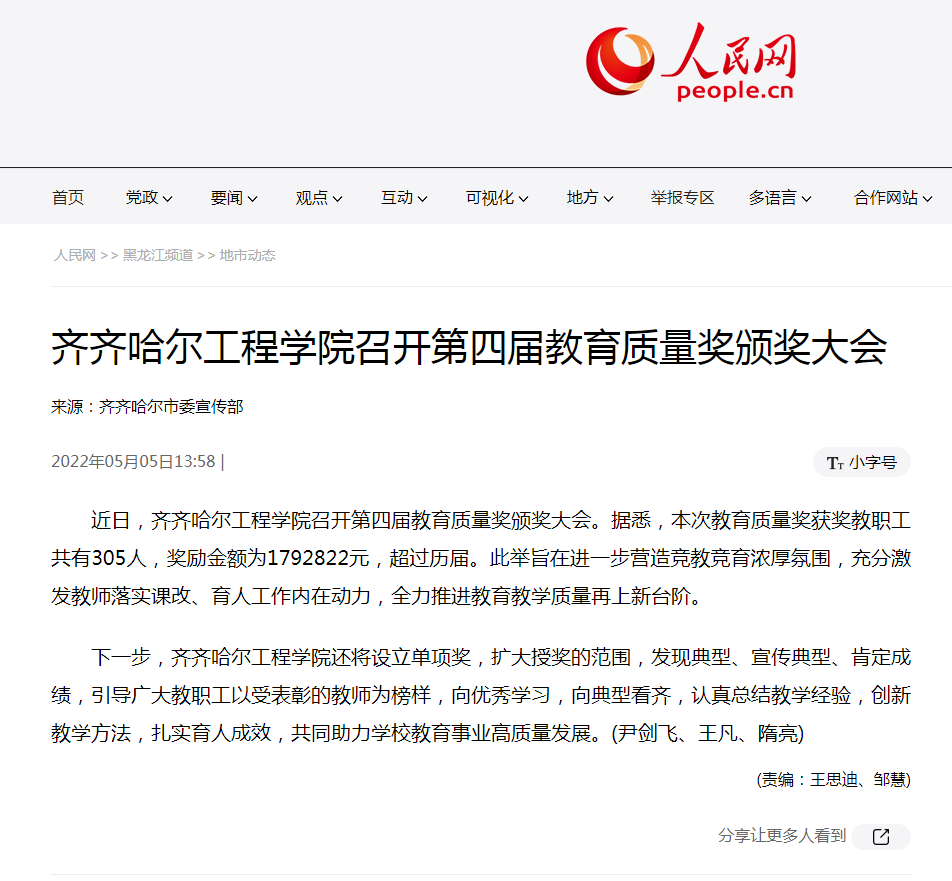 人民网:Beat365中文官方网站召开第四届教育质量奖颁奖大会