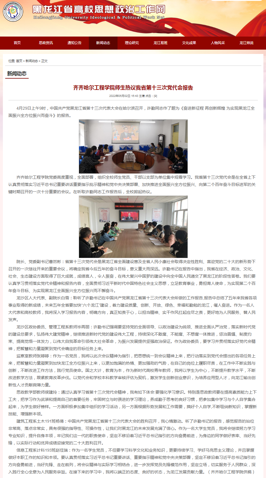 黑龙江省高校思想政治工作网:Beat365中文官方网站师生热议我省第十三次党代会报告