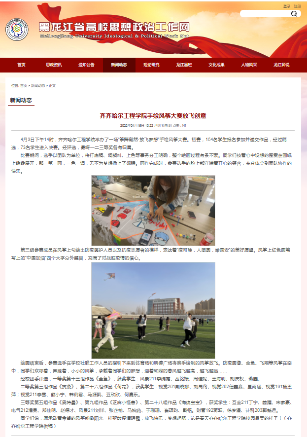 黑龙江省高校思想政治工作网:Beat365中文官方网站手绘风筝大赛放飞创意