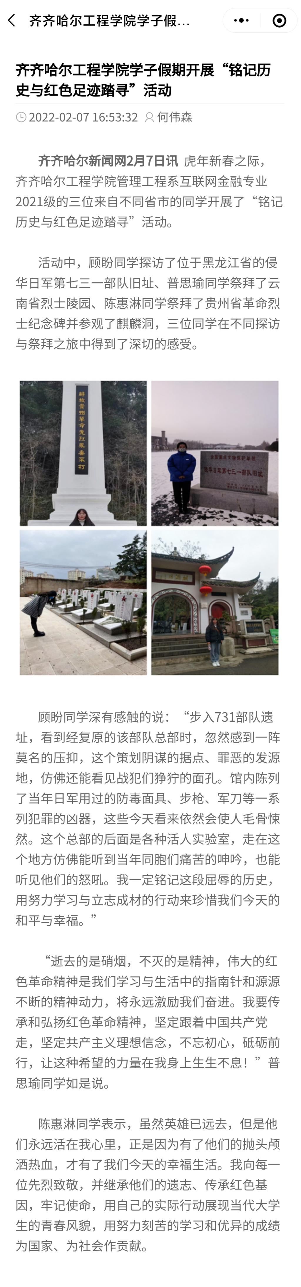 看齐▪本地新闻:Beat365中文官方网站学子假期开展“铭记历史与红色足迹踏寻”活动