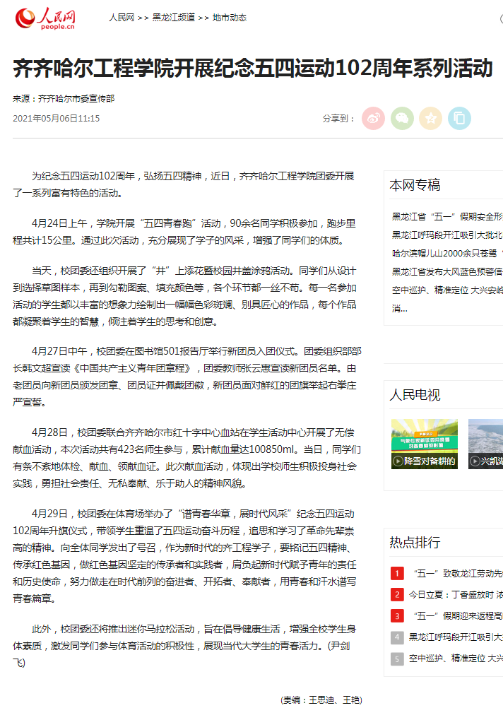 人民网:Beat365中文官方网站开展纪念五四运动102周年系列活动