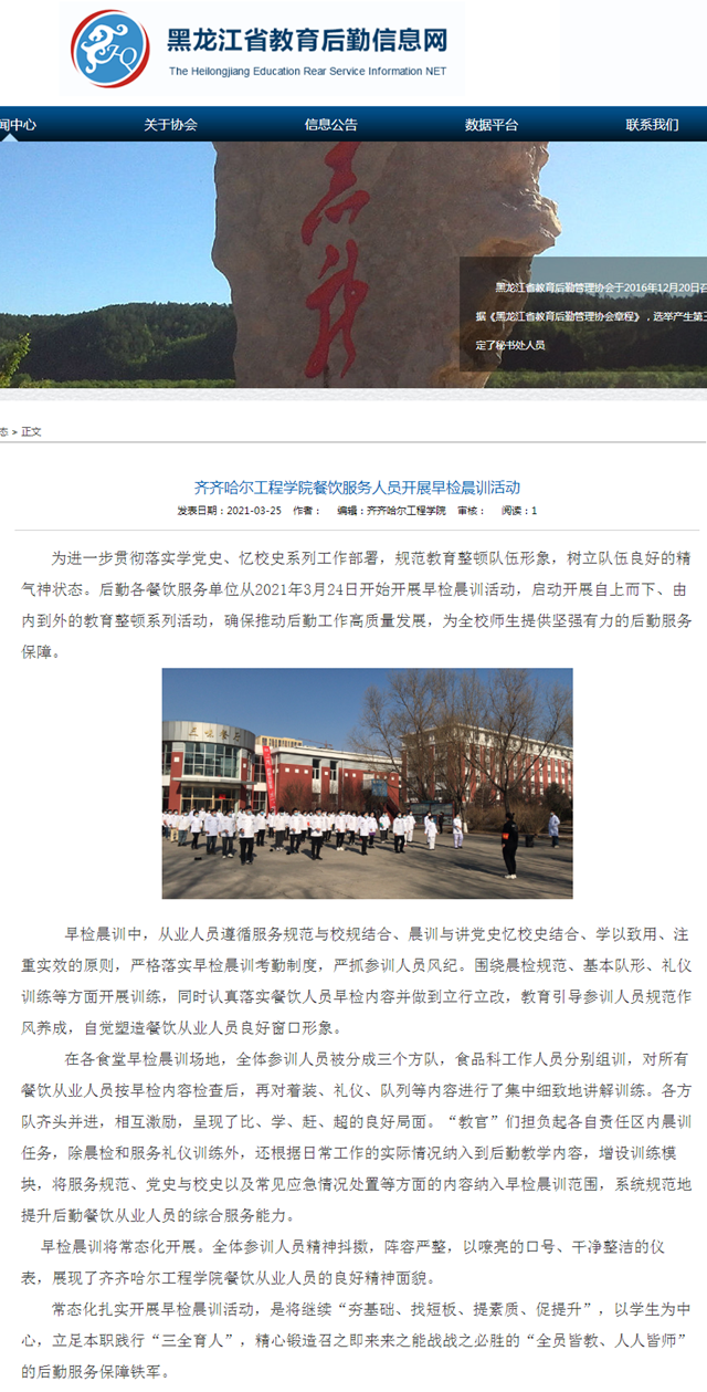 黑龙江省教育后勤信息网:Beat365中文官方网站餐饮服务人员开展早检晨训活动