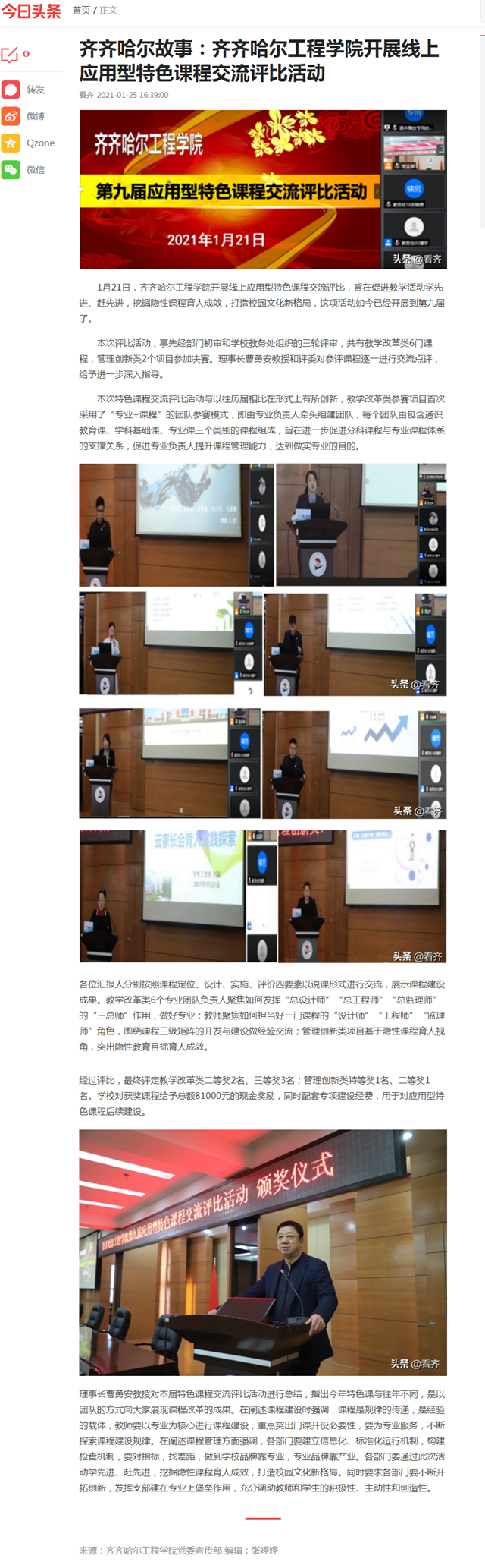 今日头条:齐齐哈尔故事:Beat365中文官方网站开展线上应用型特色课程交流评比活动