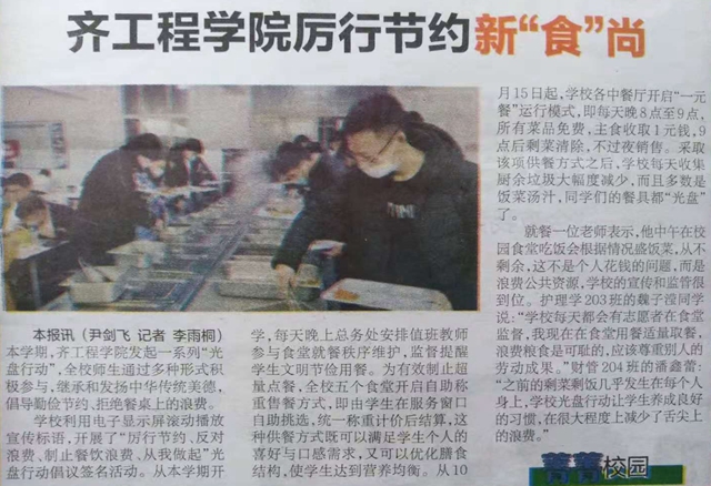 鹤城晚报:齐工程学院厉行节约新“食”尚