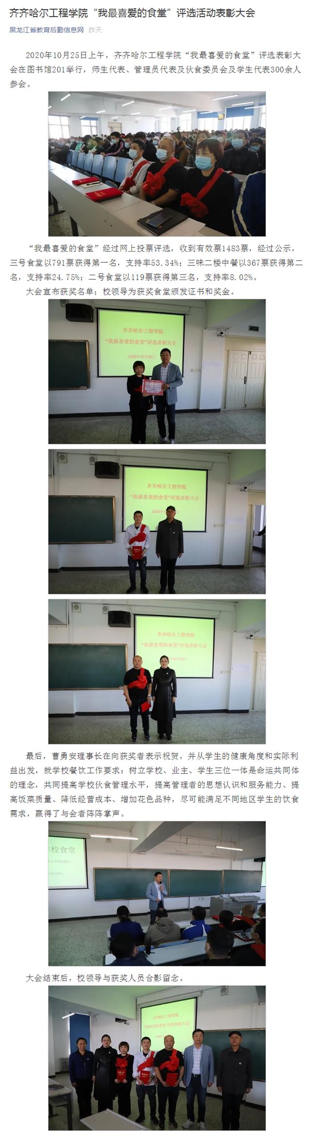 黑龙江省教育后勤信息网:Beat365中文官方网站召开“我最喜爱的食堂”评选活动表彰大会