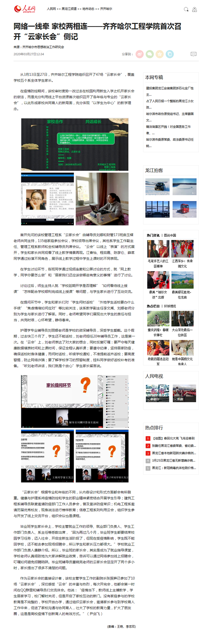 人民网:网络一线牵 家校两相连——Beat365中文官方网站首次召开“云家长会”侧记