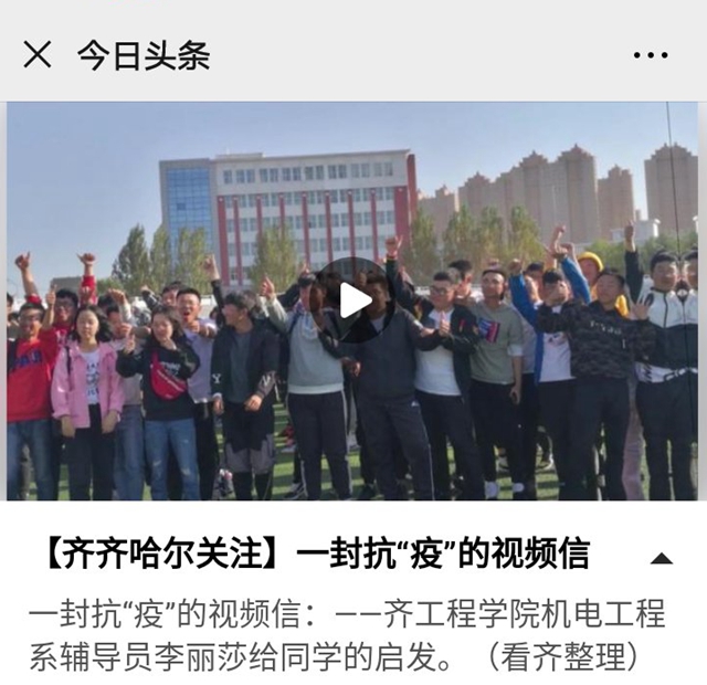 今日头条:一封抗“疫”的视频信——齐工程学院机电工程系辅导员李丽莎给同学的启发