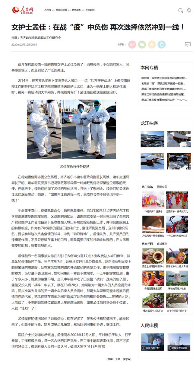 人民网:女护士孟佳:在战“疫”中负伤 再次选择依然冲到一线!