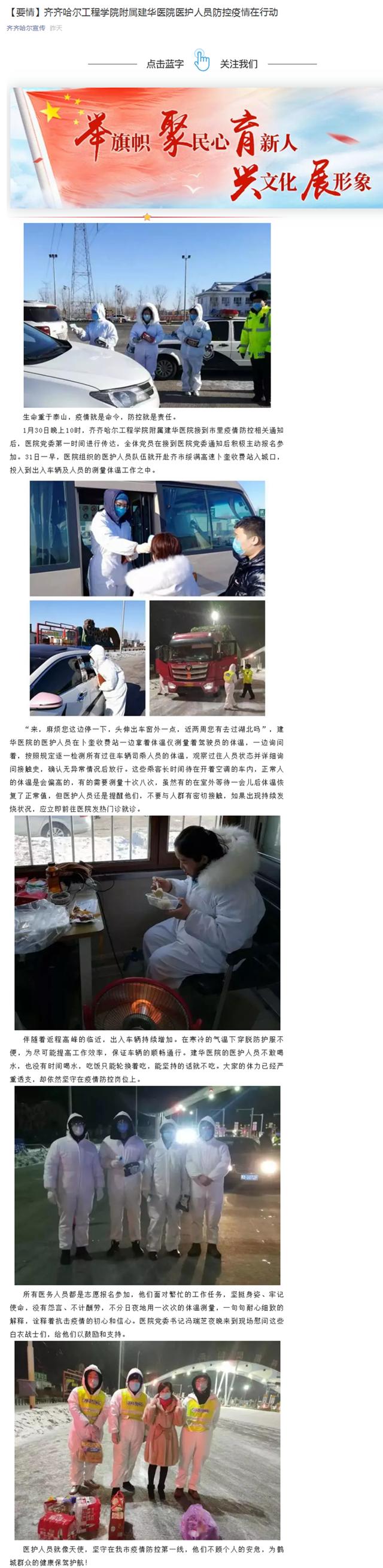 齐齐哈尔宣传《要情》:Beat365中文官方网站附属建华医院医护人员防控疫情在行动