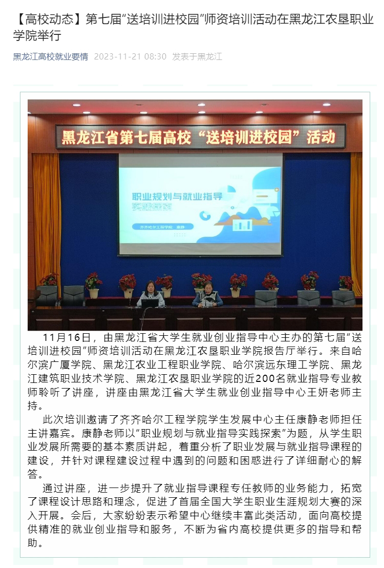 黑龙江高校就业要情:Beat365教师受邀参加第七届“送培训进校园”活动
