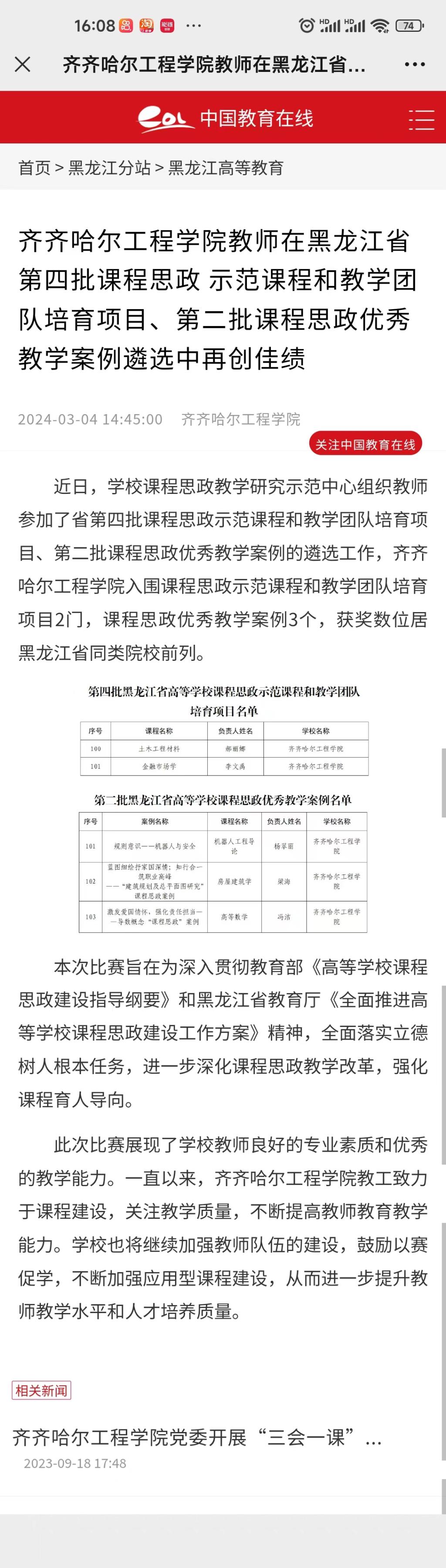 《中国教育在线》报道Beat365教师在黑龙江省第四批课程思政示范课程和教学团队培育项目、第二批课程思政优秀教学案例遴选中获得佳绩
